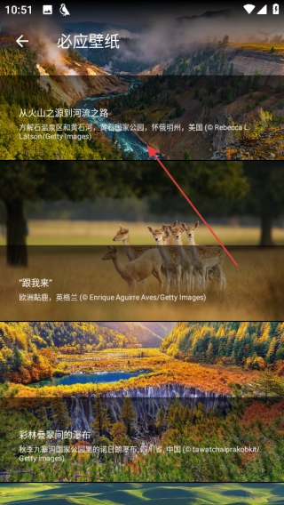 3、在必应壁纸页面,选择从火山之源到河流之路壁纸,进入该壁纸详情页面。
