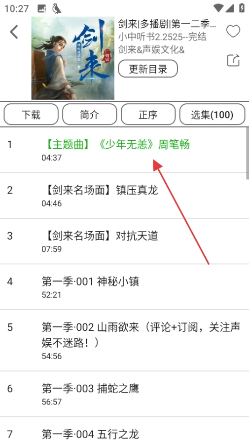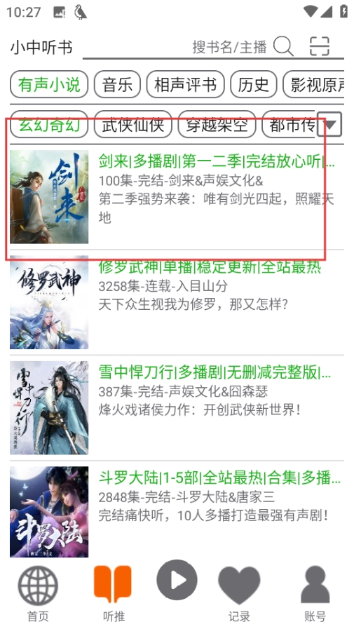 2、在听推页面,点击剑来,进入该剧集页面。