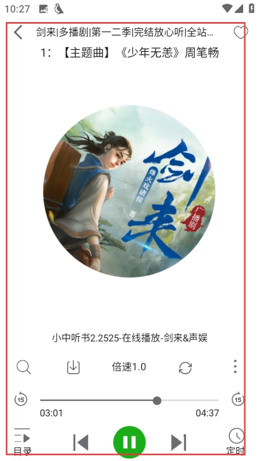 4、在播放页面,即可收听剑来主题曲少年无恙。