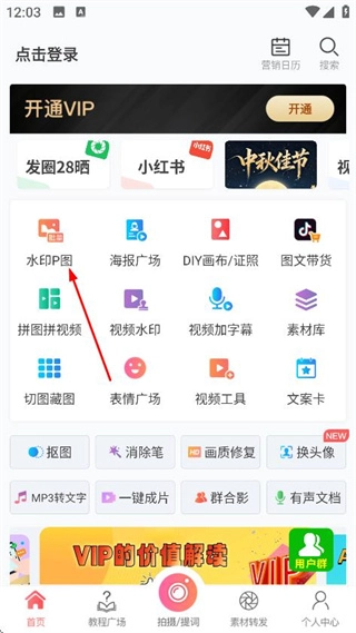 1、在微脉水印相机的首页,点击水印P图,进入系统相册页面。