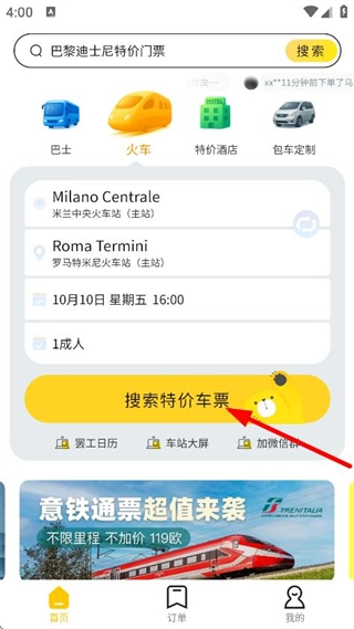 1、确认出发地、目的地、日期、人数等信息后,点击搜索特价车票,查询车票。