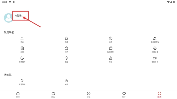 2、在我的页面,点击选择未登录按钮。