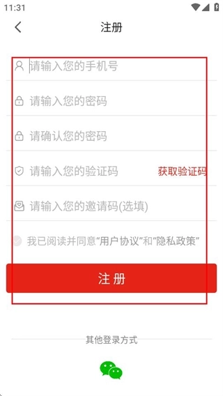 3、在登录页面,点击注册选项,可进入账号注册页面。