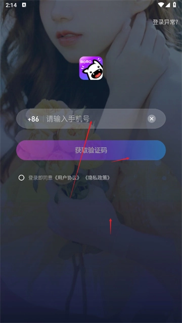 2、输入手机号登录;