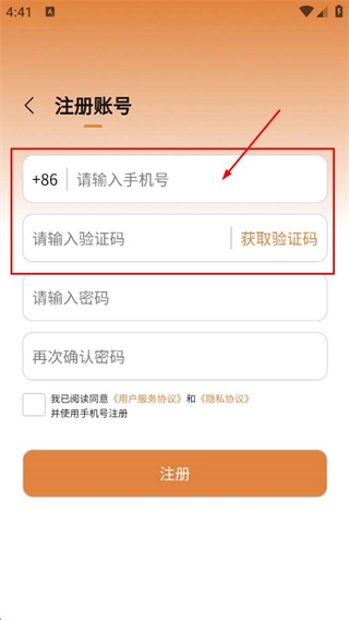 在注册账号的页面中,先填写手机号,接着点击“获取验证码”按钮,随后输入收到的对应验证码。