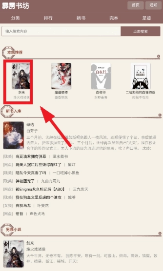 1、打开,进入首页,在这里可以选择或者搜索自己想看的小说