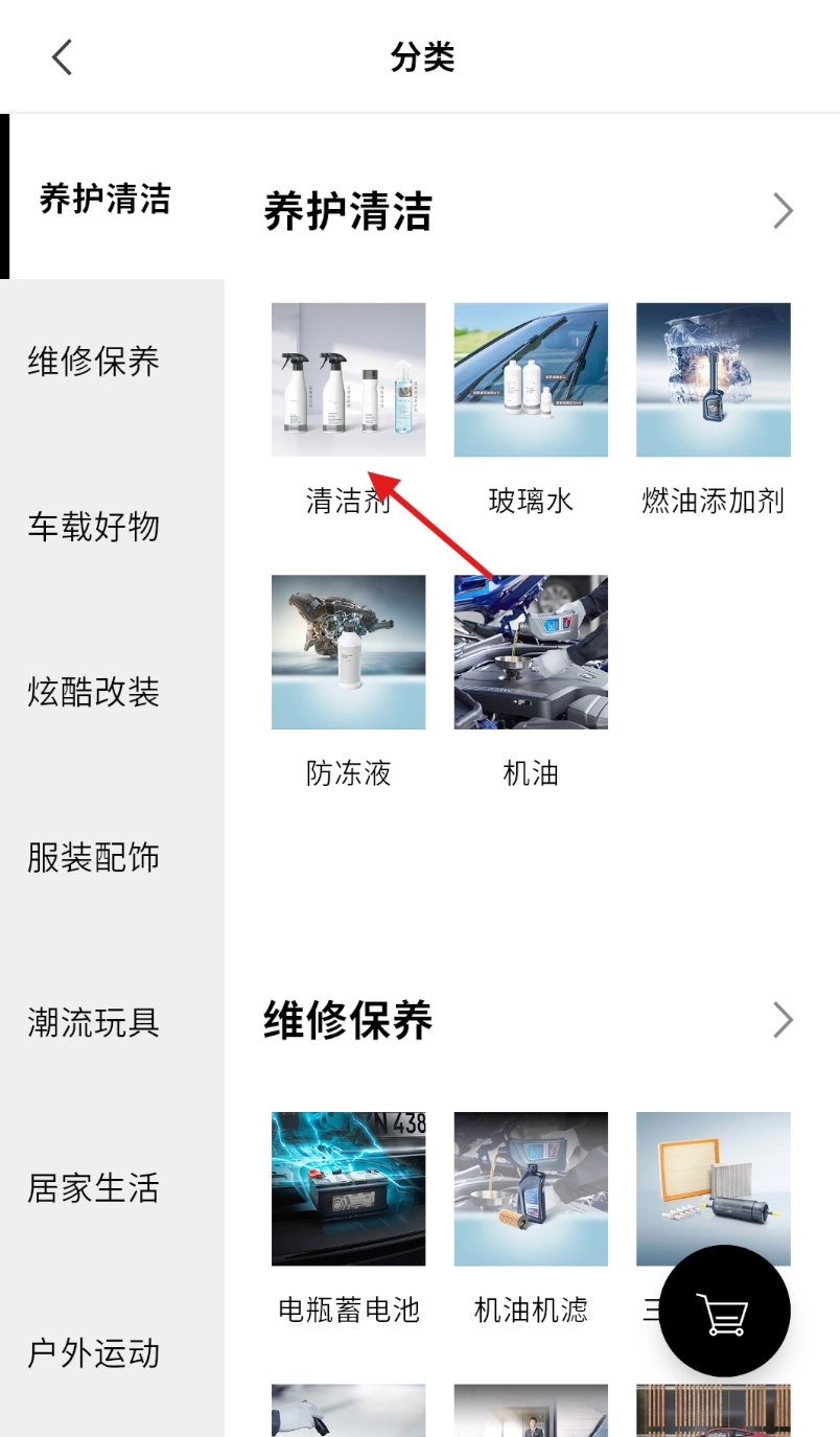 3、进入分类页面后,找到“清洁剂”分类并点击,浏览对应的商品。