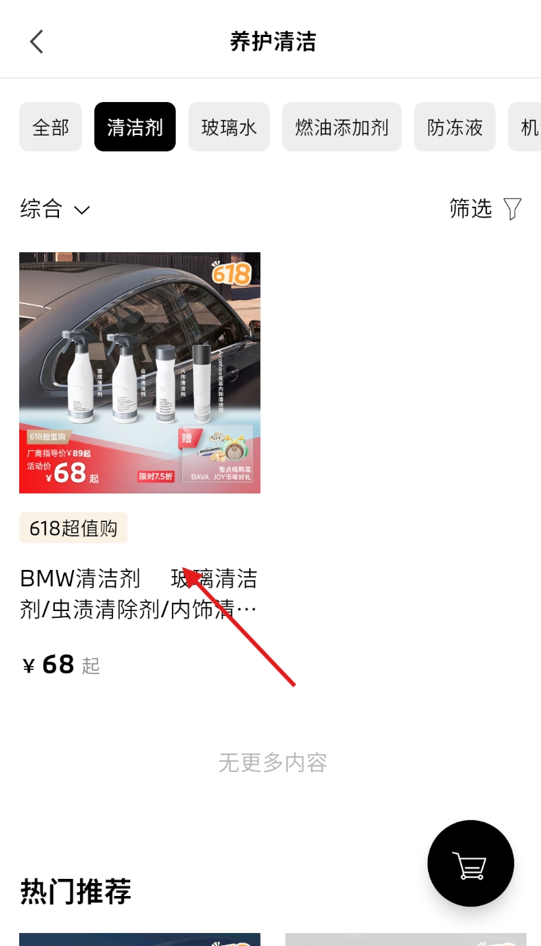 4、在显示出的清洁剂商品列表中,挑选想要购买的BMW清洁剂并点击进入详情页面。