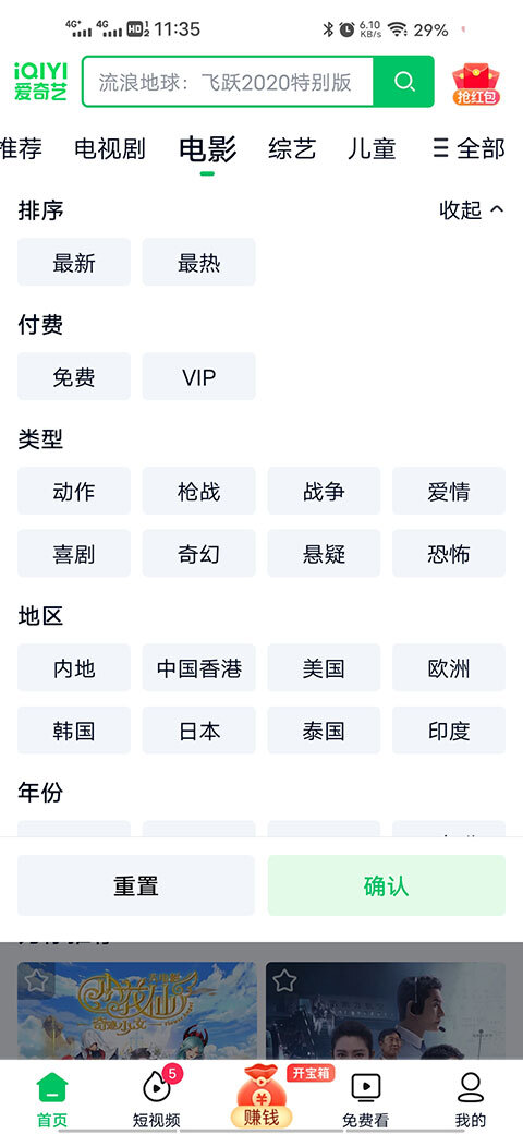 3、也可以选择在主界面,找到电影板块,重置选择自己喜欢的类型。