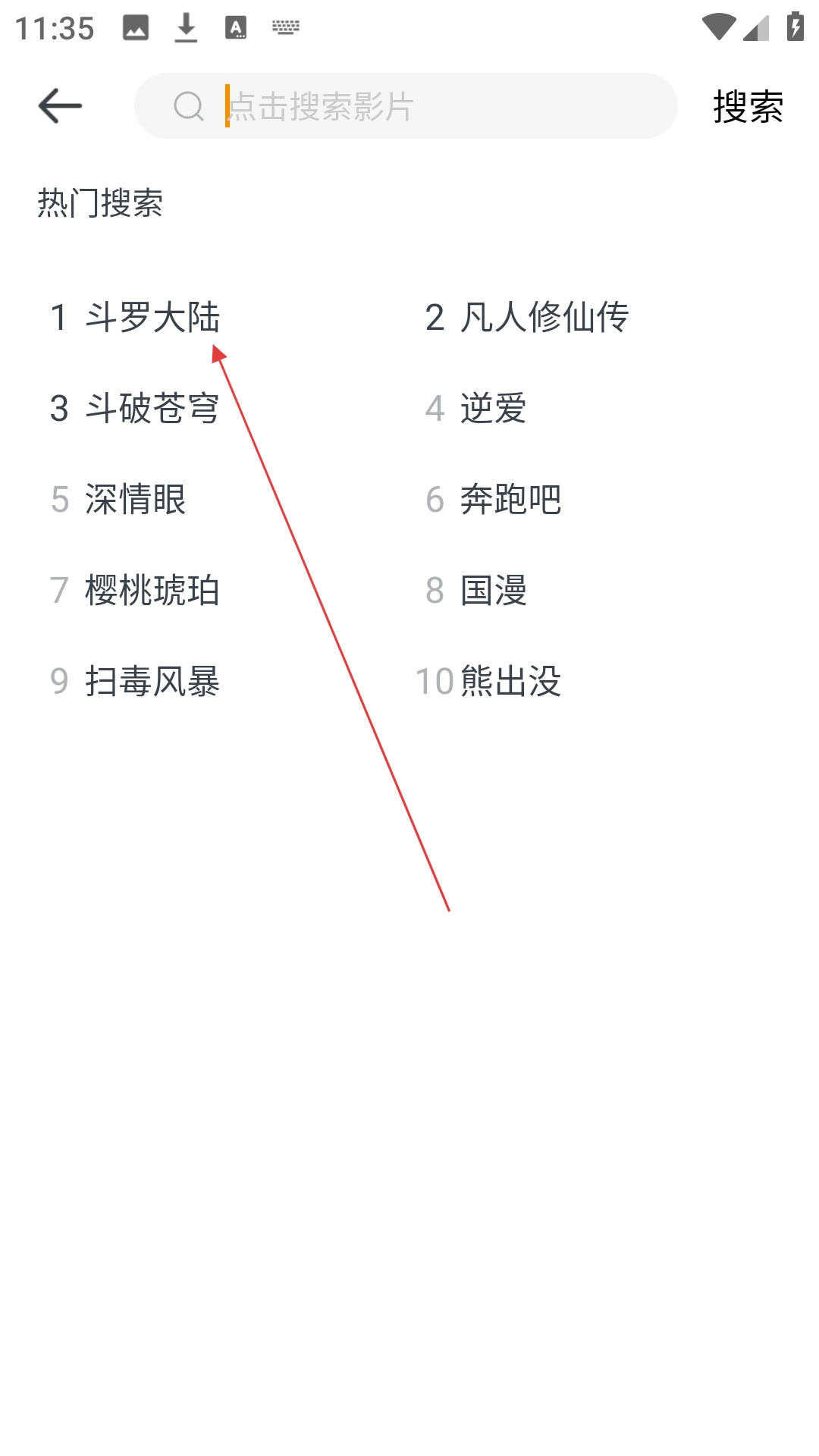在搜索页面里,找到热门搜索区域,从中选择【斗罗大陆】这个选项来进行搜索。