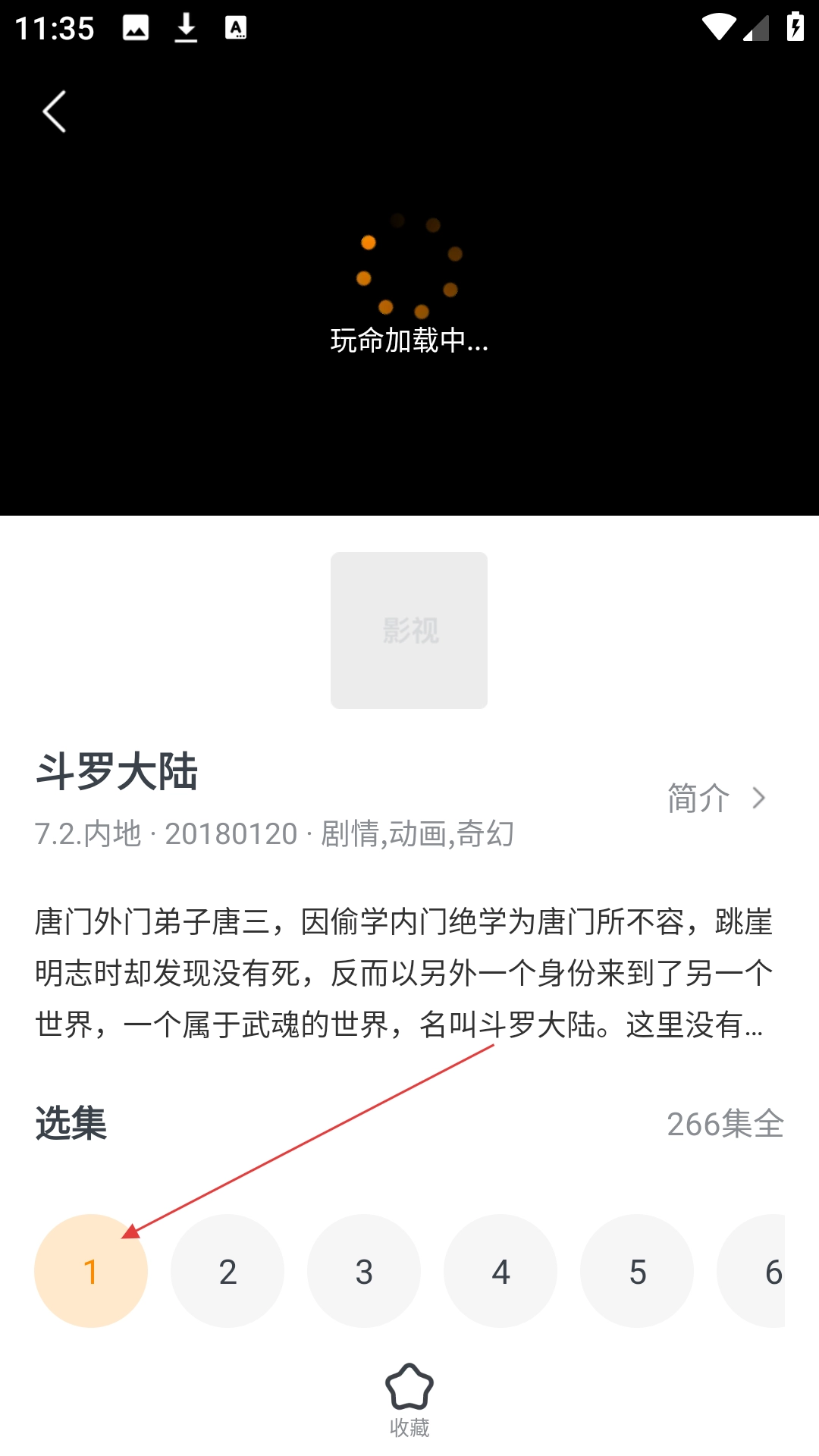 在视频详情页中选择第1集,就能开始观看斗罗大陆动画了。