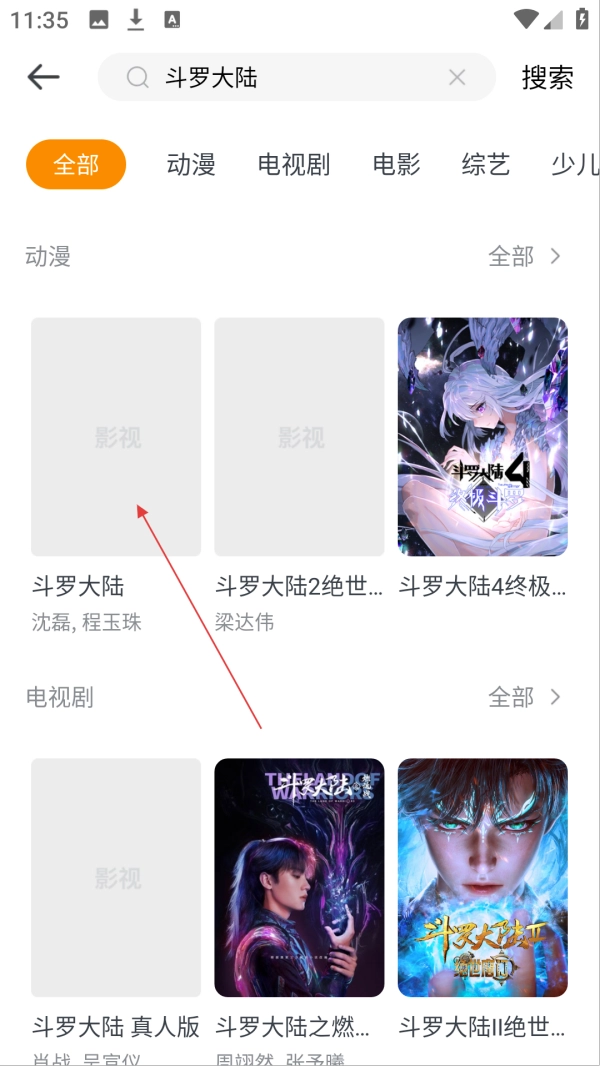 你可以在搜索结果页面找到【斗罗大陆】并点击,这样就能进入它的视频详情页面了。