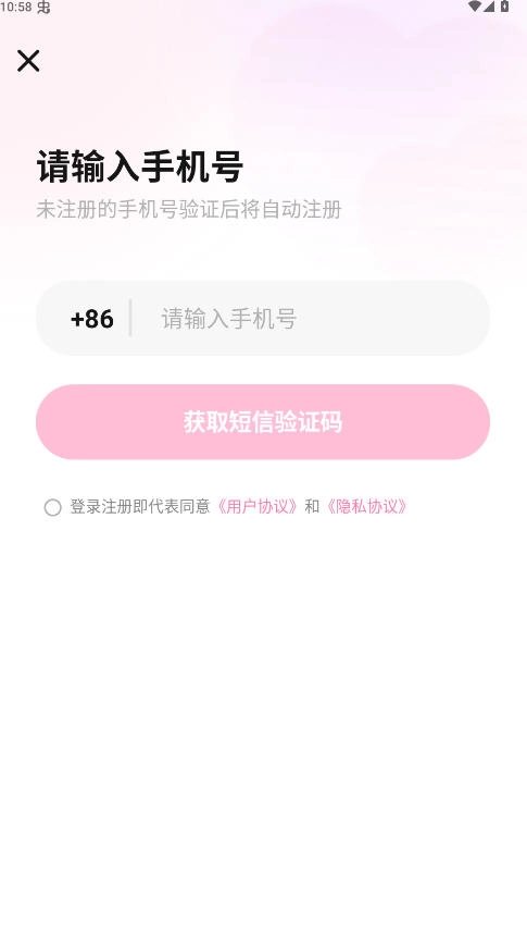 3、选择手机号注册方式,输入手机号并获取验证码,填写验证码后完成注册流程。