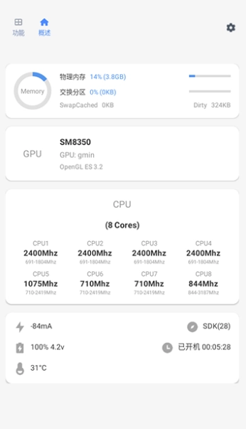 硬件级性能调校:支持对CPU调度策略、SWAP虚拟内存、ZRAM压缩内存等底层参数进行调整,从而实现流畅度优化或省电效果提升。