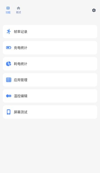 2、选好之后就能进入主界面,点击“功能”选项,这里会展示帧率记录、充电统计、耗电统计等功能。