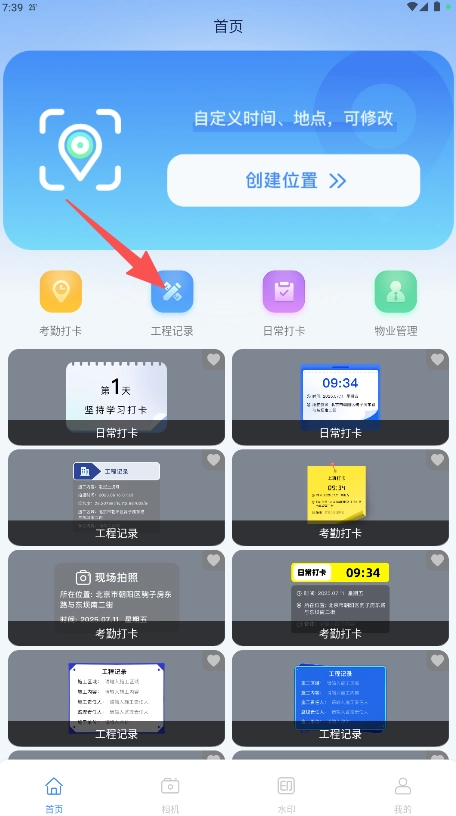 1、水印模板库分类清晰明了,像工程记录、考勤打卡这类场景都划分得很明确,能让用户快速挑选并应用到相应的工作中。