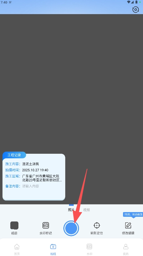 3、操作流程注重真实性与不可篡改性,水印信息直接调取系统数据,保障照片作为工作凭证的有效性与可信度。
