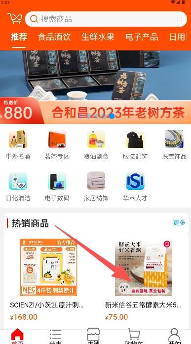 你可以在首页的“热销商品”区域进行浏览,也能借助分类导航来查找想要的商品。