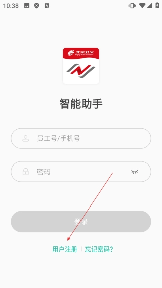 在智能助手的登录页面,点击【用户注册】按钮,即可进入注册界面。