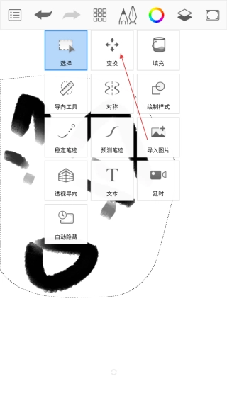 在菜单中,点击【变换】选项,进入变换操作页面。