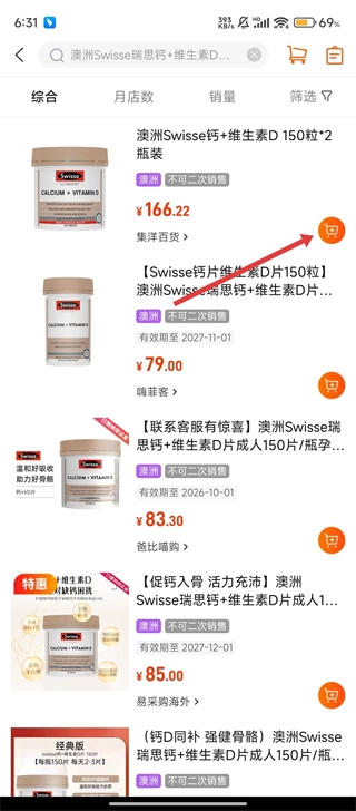 在药品列表中选好想要的药品后,点击药品右侧的购物车图标就能把它加入购物车,这样就离成功购药更近一步啦。