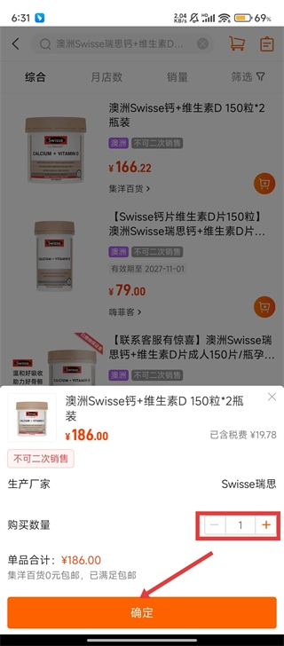 当购买数量的弹窗出现后,确认好需要的数量,点击【确定】按钮,药品就会被成功加入购物车,接下来就只剩最后一步操作啦。