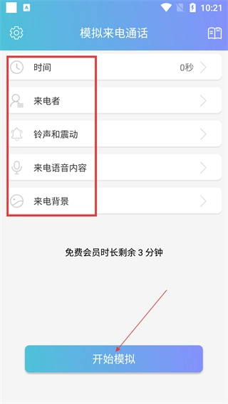在【模拟来电通话】界面配置好【时间】【来电者】等相关信息后,点击【开始模拟】按钮就能触发模拟来电功能。