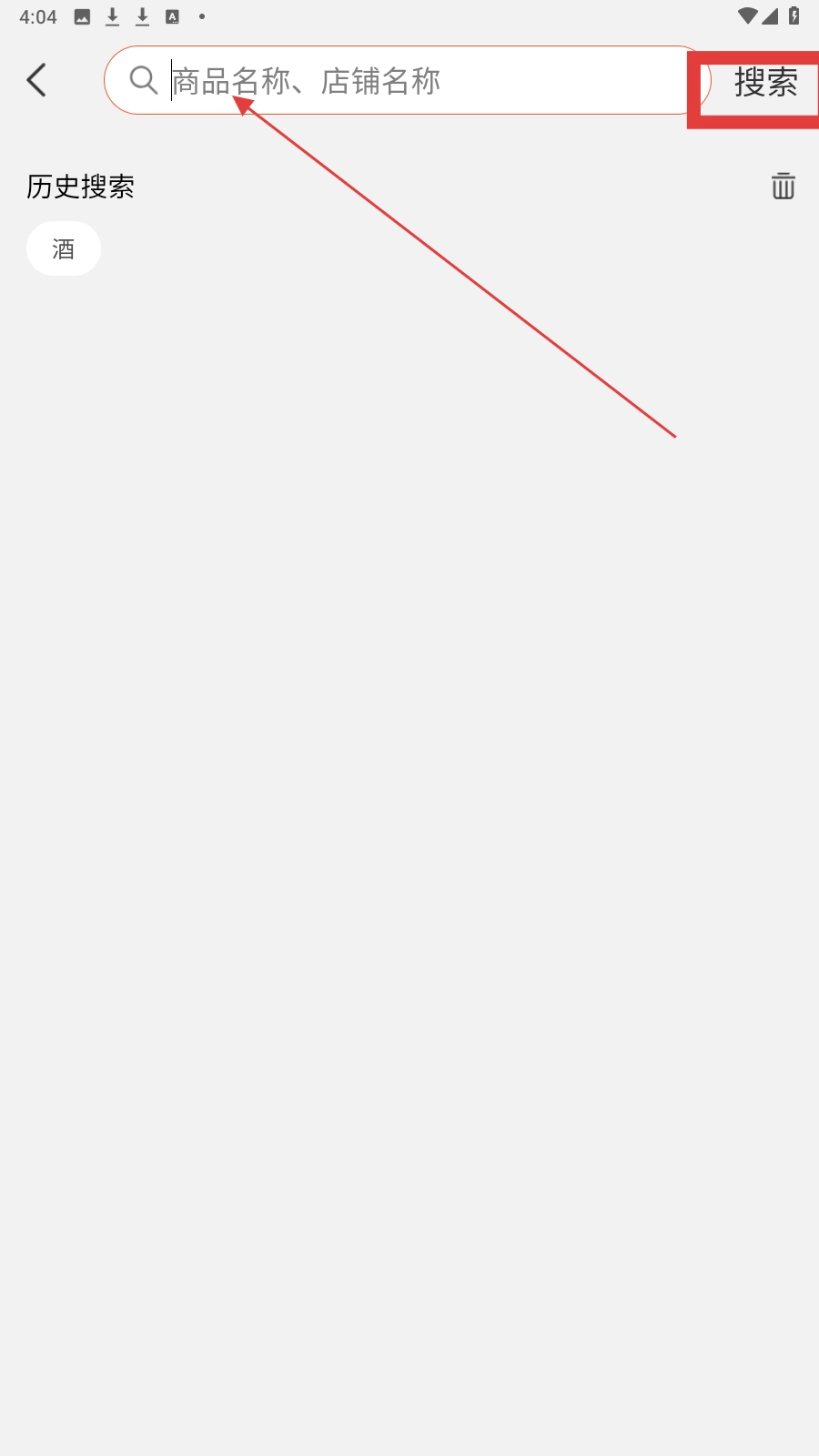 点击顶部的搜索框,使其进入可输入状态,以便后续输入想要查找的商品或店铺名称。