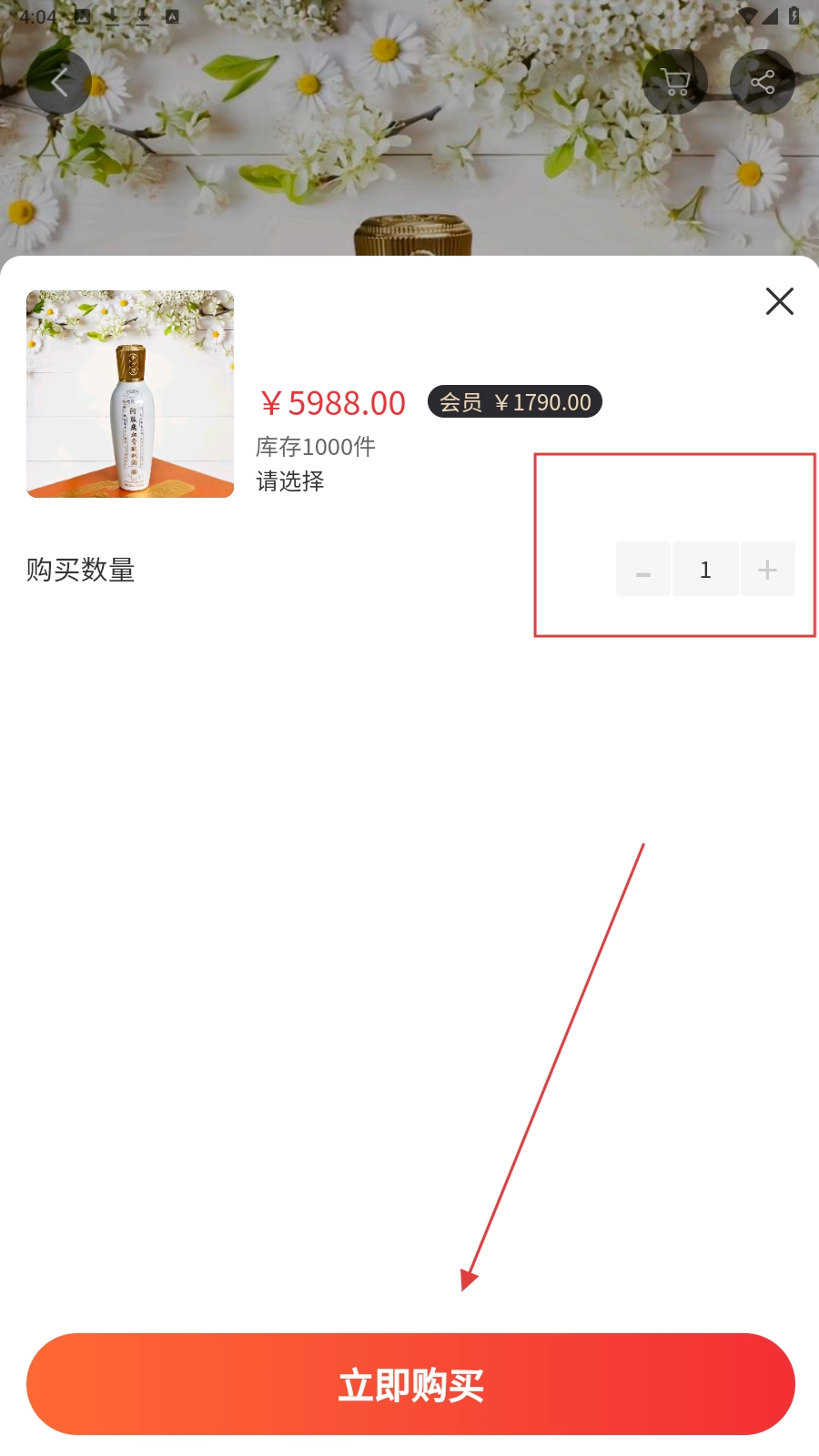 您可以先确认购买数量,通过加减按钮调整到所需数目后,点击【立即购买】按钮即可完成购买流程。