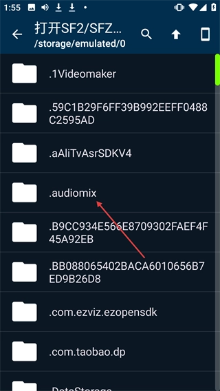 在“打开SF2/SFZ...”的文件选择界面中,点击【.audiomix】文件夹。