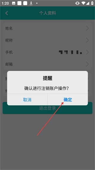 在注销确认弹窗中点击【确定】,完成账户注销。