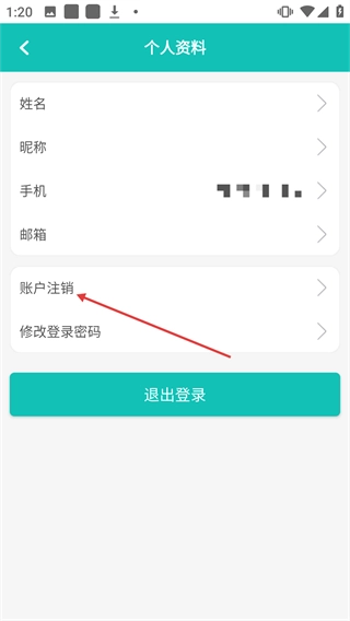 在个人资料页面点击【账户注销】按钮,即可进入账户注销的确认流程。