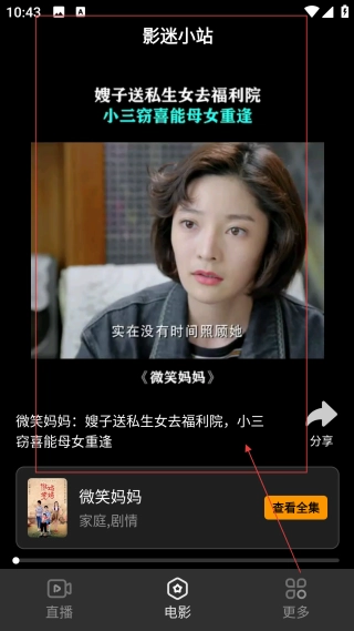 进入影迷小站,既能【观看《微笑妈妈》片段】,也能观看完整剧集内容。
