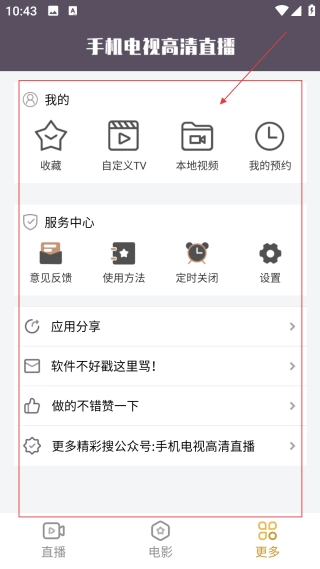进入更多页面后,你可以使用【收藏、自定义TV】等功能,来管理与个人观看相关的服务。