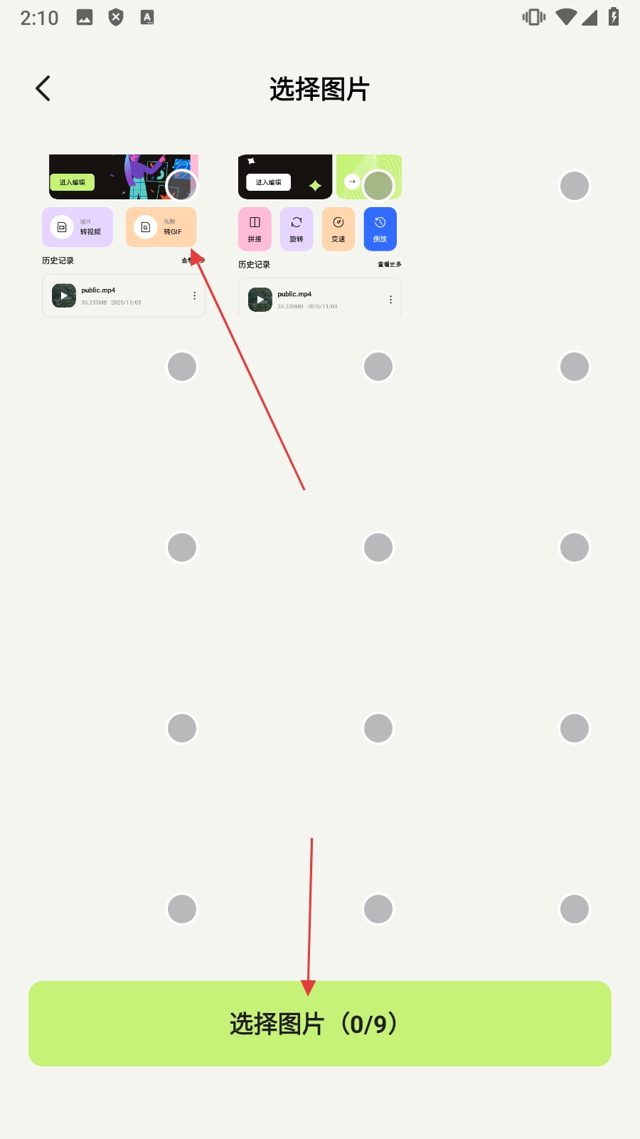 在页面里,点击【图片转视频】按钮,就能进入图片选择界面。