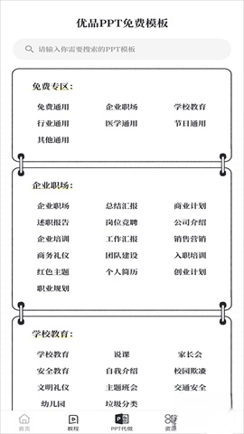 优品PPT免费模板是一款专注于PPT制作的实用工具类软件,覆盖毕业答辩、工作汇报、个人简历等多元使用场景,搭配模板预览、精准分类等便捷功能,让零基础用户也能快速制作出高质量PPT,大幅提升办公与学习效率,是学生、职场人士的必备PPT制作神器。