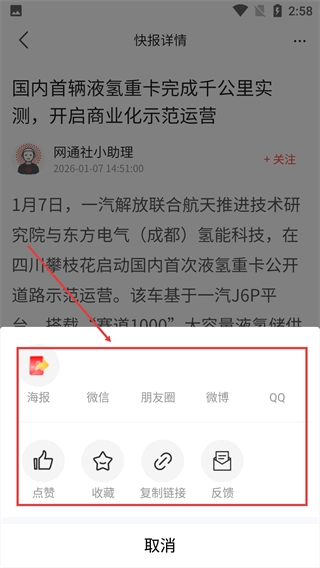 在【快报】页面,点击目标快报文章。