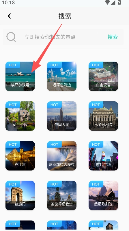 在搜索页面挑选对应景点,或输入关键词搜索。