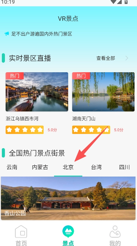 进入景点板块,查看VR景点以及全国热门景点的街景内容。