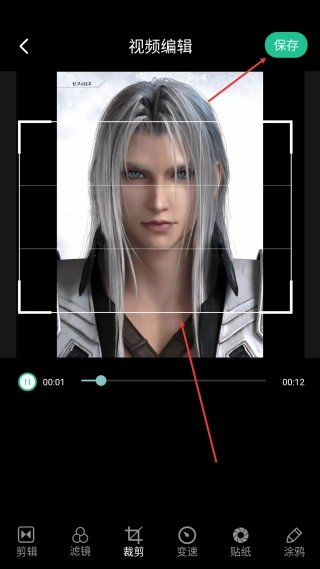在裁剪调整页面,完成【调整画面】的操作后,点击右上角的【保存】按钮,就能结束视频裁剪的流程了。
