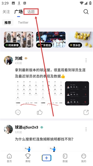 进入发现页面后,点击顶部的【话题】标签,就能切换到话题板块,查看各类话题内容。