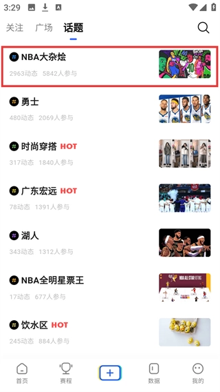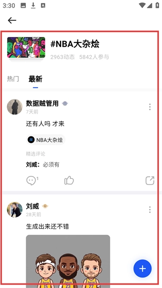 进入【#NBA大杂烩】话题详情页,就能查看该话题下的最新动态内容,也可以参与互动交流。
