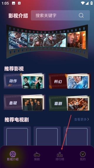 打开影视工具后,点击底部的【排行榜】选项,即可进入影视排行展示页面。