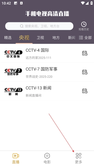 频道分类功能划分出多个直播板块,央视、卫视、地方台以及财经、影视、体育、少儿等内容都得到清晰归类,方便用户查找。