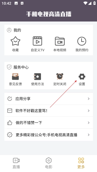 在更多页面中,点击【设置】选项,即可进入功能与设置的管理界面。
