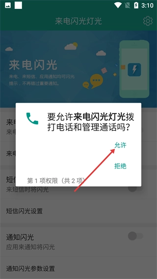 2、在权限请求弹窗里点击【允许】,以此授予来电闪光灯光拨打电话以及管理通话的权限。