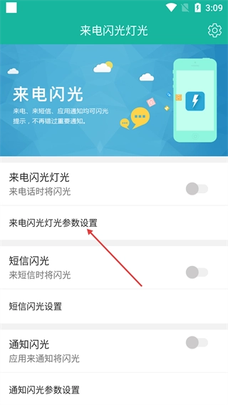 1、在【来电闪光灯光】界面点击【来电闪光灯光参数设置】,进入参数设置页面。