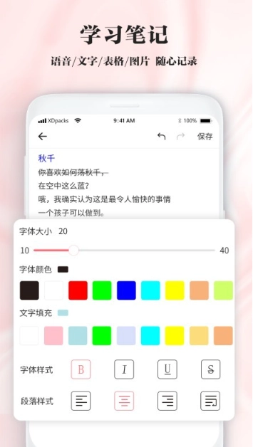 1.字体、颜色、背景、样式都能随意调整,可满足个性化记录的需求;