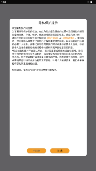 软件安装完成后打开,会弹出是否同意的提示,点击同意即可进入注册界面。