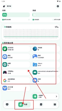 2、可以通过查看内存页面,了解应用储存占用情况;